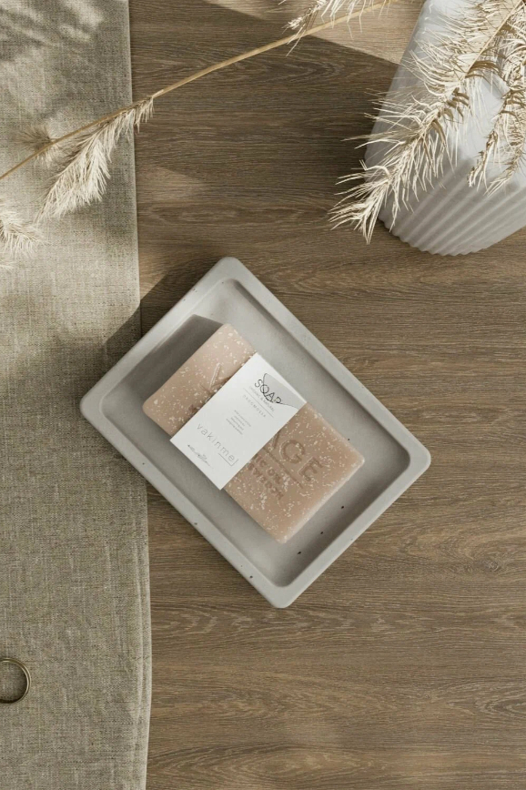 Хранить мыло сухим и чистым помогает мыльница. Эта, изготовленная в ручную, сделана из бетона и покрыта защитным слоем от влаги. А на обратную сторону прикреплены специальные силиконовые накладки, благодаря которым изделие не царапает раковину. Размер небольшой — 12 x 9см. В линейке на выбор четыре цвета: серый, светло-серый, тёмно-серый и чёрный. Все они смотрятся дорого и стильно.