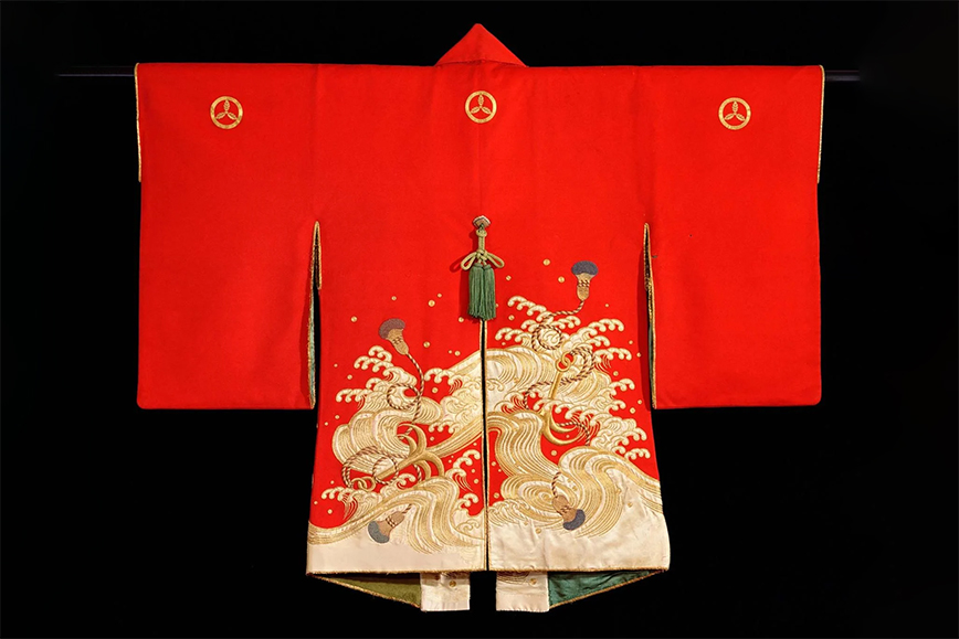 Женская куртка для борьбы с огнём, украшенная золотой вышивкой, использовалась в Эдо (современный Токио) для защиты женских покоев. Фото: John Bigelow Taylor