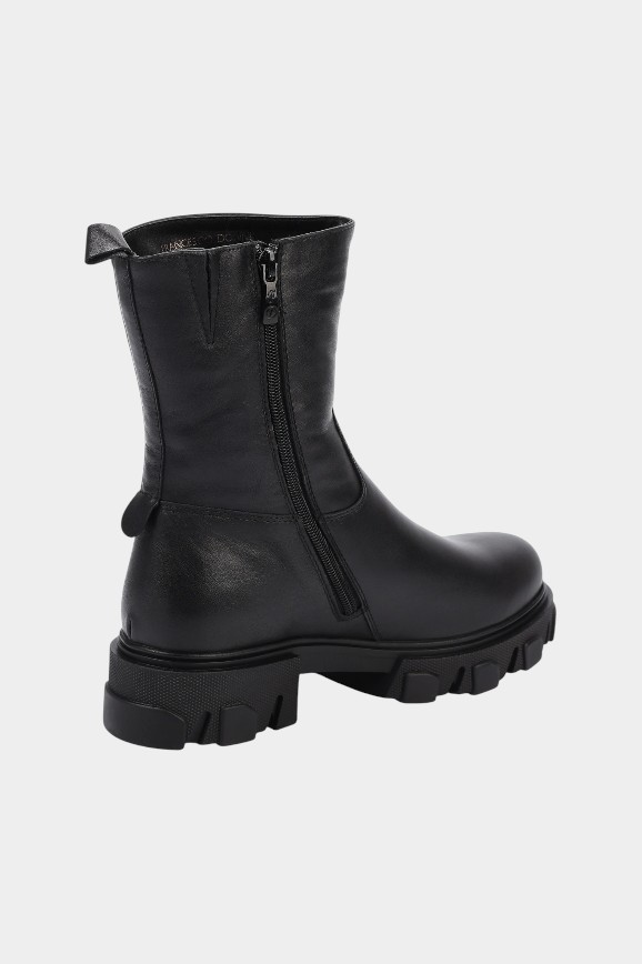Подошва сделана из термоэластопласта — это лёгкий и прочный материал, который устойчив к слякоти и реагентам. Высота платформы четыре сантиметра. Получается оптимальный вариант для ежедневной носки: каблук не ощущается, но при этом вас никогда не захлестнёт снежной жижей. С внутренней стороны обувь застёгивается на молнию.
