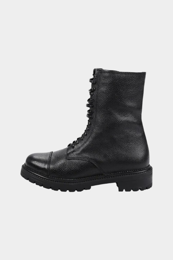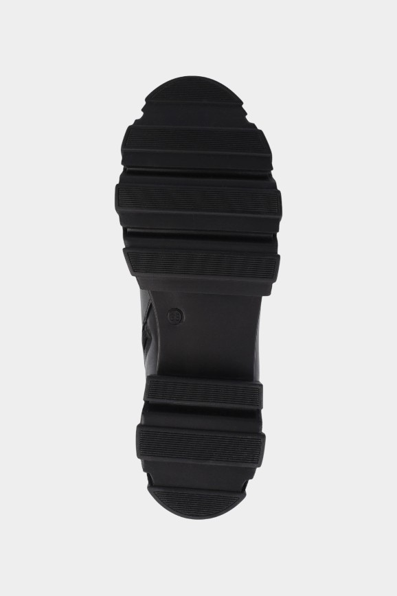 Дизайн полусапожек греет душу: у них глубокий чёрный цвет, массивная подошва с глубоким протектором и при этом аккуратный округлый нос. С одной стороны, они добавят смелости повседневным образам, с другой — не будут выглядеть чересчур эпатажно. Модель хорошо сочетается и с брюками, и с юбками, впишется в луки с пальто, пуховиками и даже косухами. Пара чем-то напоминает классические челси, полюбившиеся миллионам бунтарок.