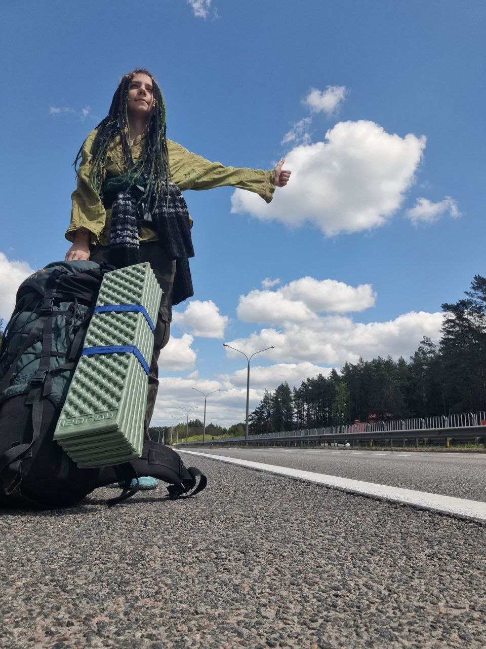 Изначально я должна была ехать с приятелем, который тоже часто автостопил. Мы выбрали дату, купили билет на поезд, чтобы отправиться из нашего региона на материк и начать путешествие уже оттуда. Я собрала огромный рюкзак, который весил, как треть меня — около четырнадцати килограммов. Взяла всё самое необходимое: туристический коврик, спальник, тёплую одежду, дождевик, самодельные браслетики, чтобы дарить их тем, кто будет помогать в пути. Я с детства увлекаюсь плетением, и моя небольшая традиция — делать подарки людям, которые мне нравятся или помогают.