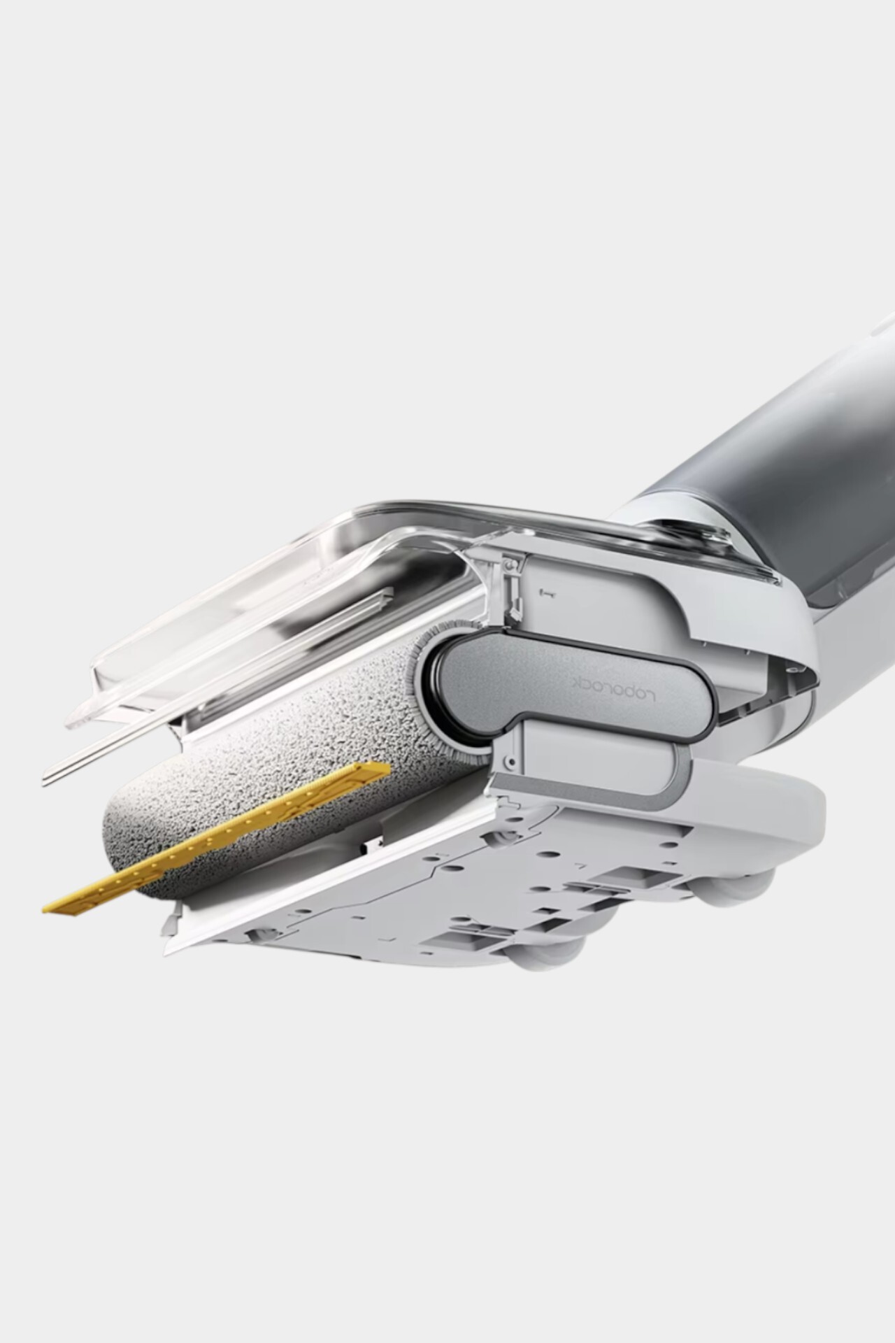 У конструкции есть фишка — пылесос раскладывается на 180 градусов, благодаря чему легко заезжает под кровать, тумбы и другие места, куда не доползают другие. Высота гаджета в таком положении составляет 12,5 сантиметров. Убирая грязь на своём пути, Roborock F25 RT буквально готов исполнить нижний брейк.