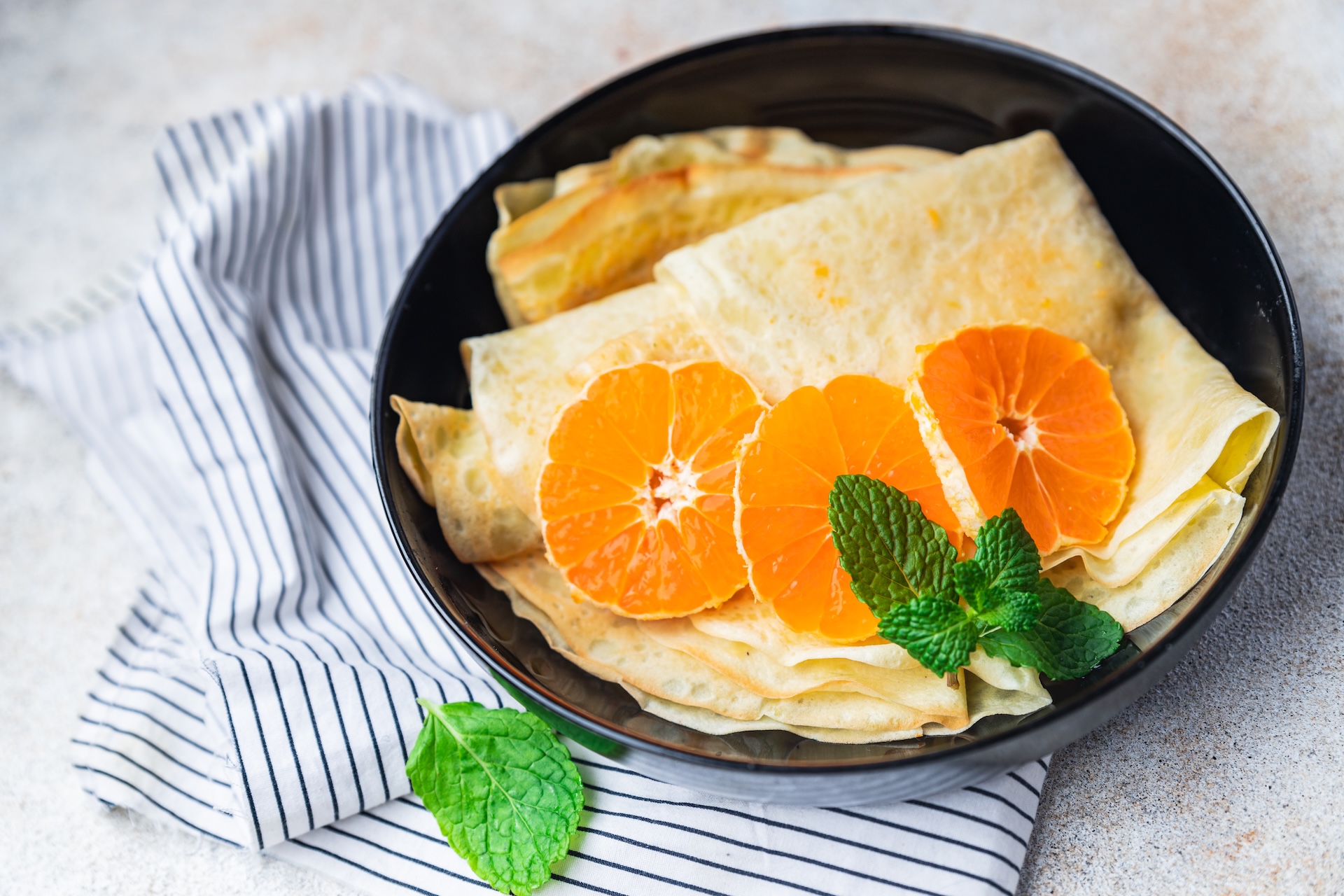 Такие блины помогут по-новому взглянуть на этот вид выпечки. Корица и апельсиновая цедра хорошо сочетаются со взбитыми сливками, сгущённым молоком или мороженым.