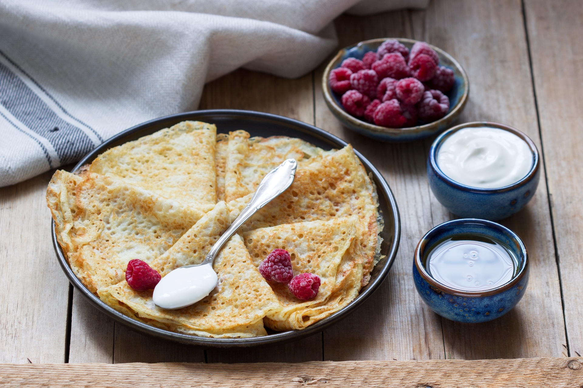 Добавление кипятка в тесто делает блинчики более эластичными и податливыми. В результате они легко переворачиваются при выпечке и не рвутся во время еды.