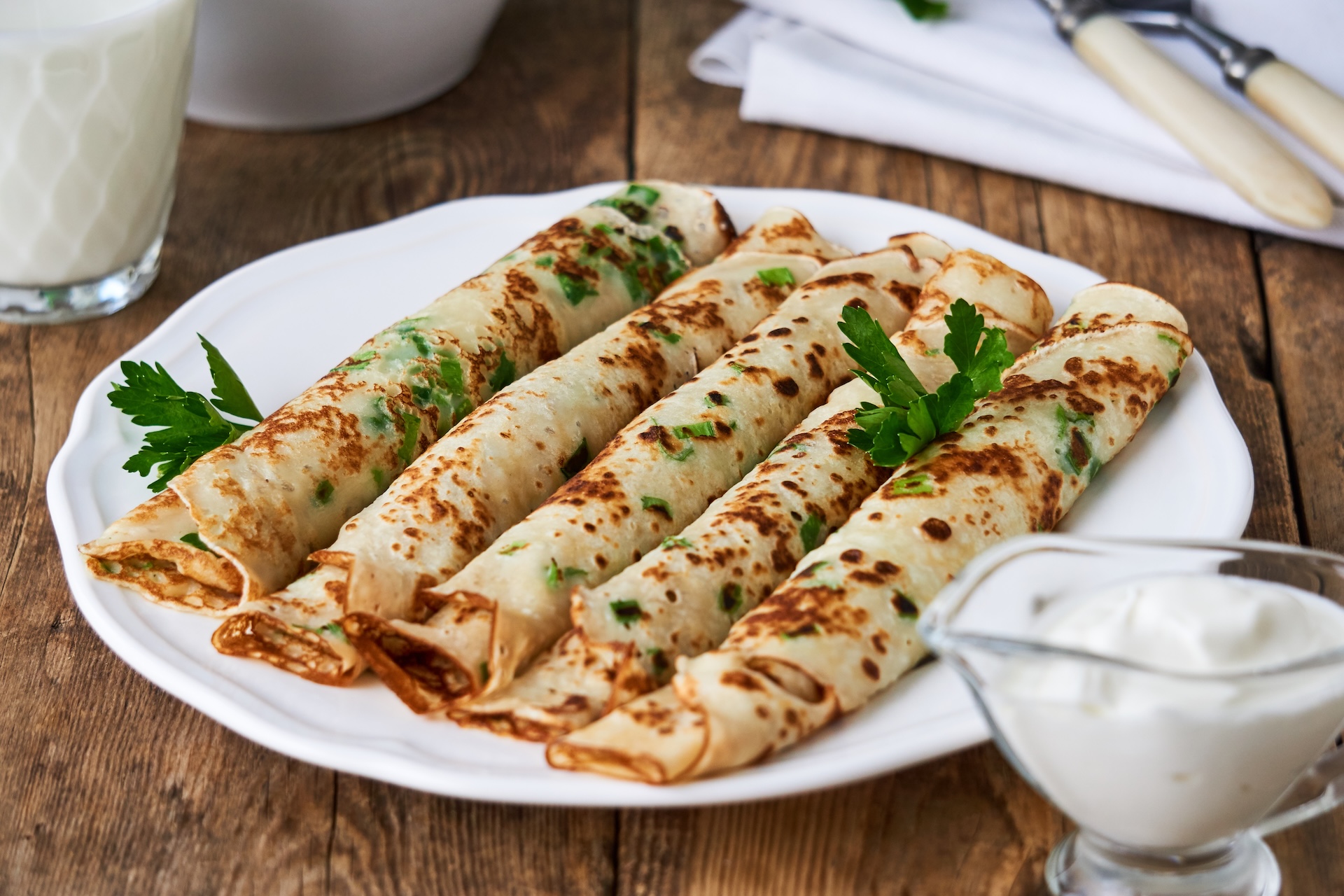 Это блины могут выступать в качестве самостоятельного блюда или как основа для несладких начинок.