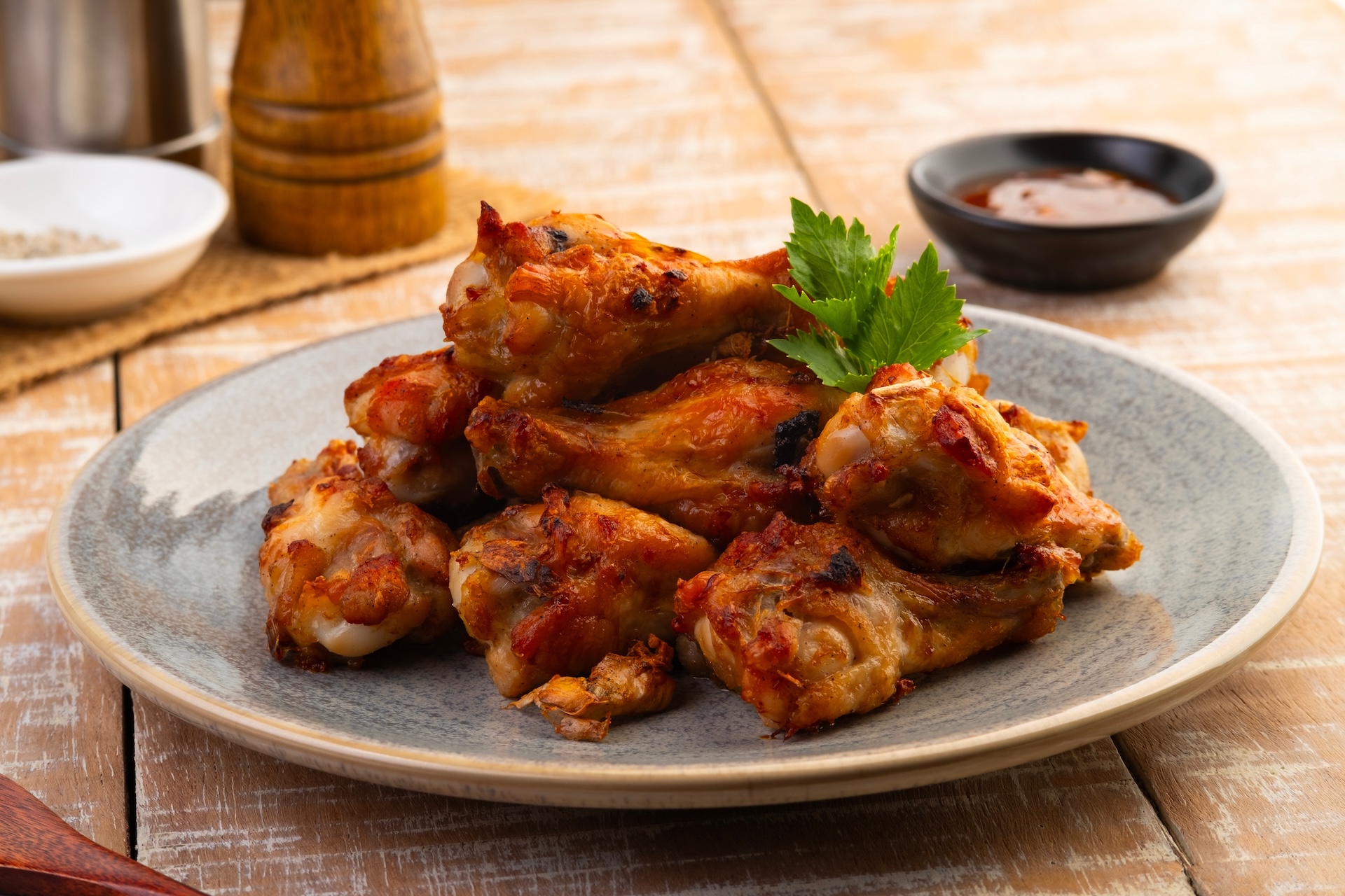 Крылышки в аэрогриле получаются невероятно хрустящими и аппетитными. Острый соус делает их ярче и интереснее на вкус.