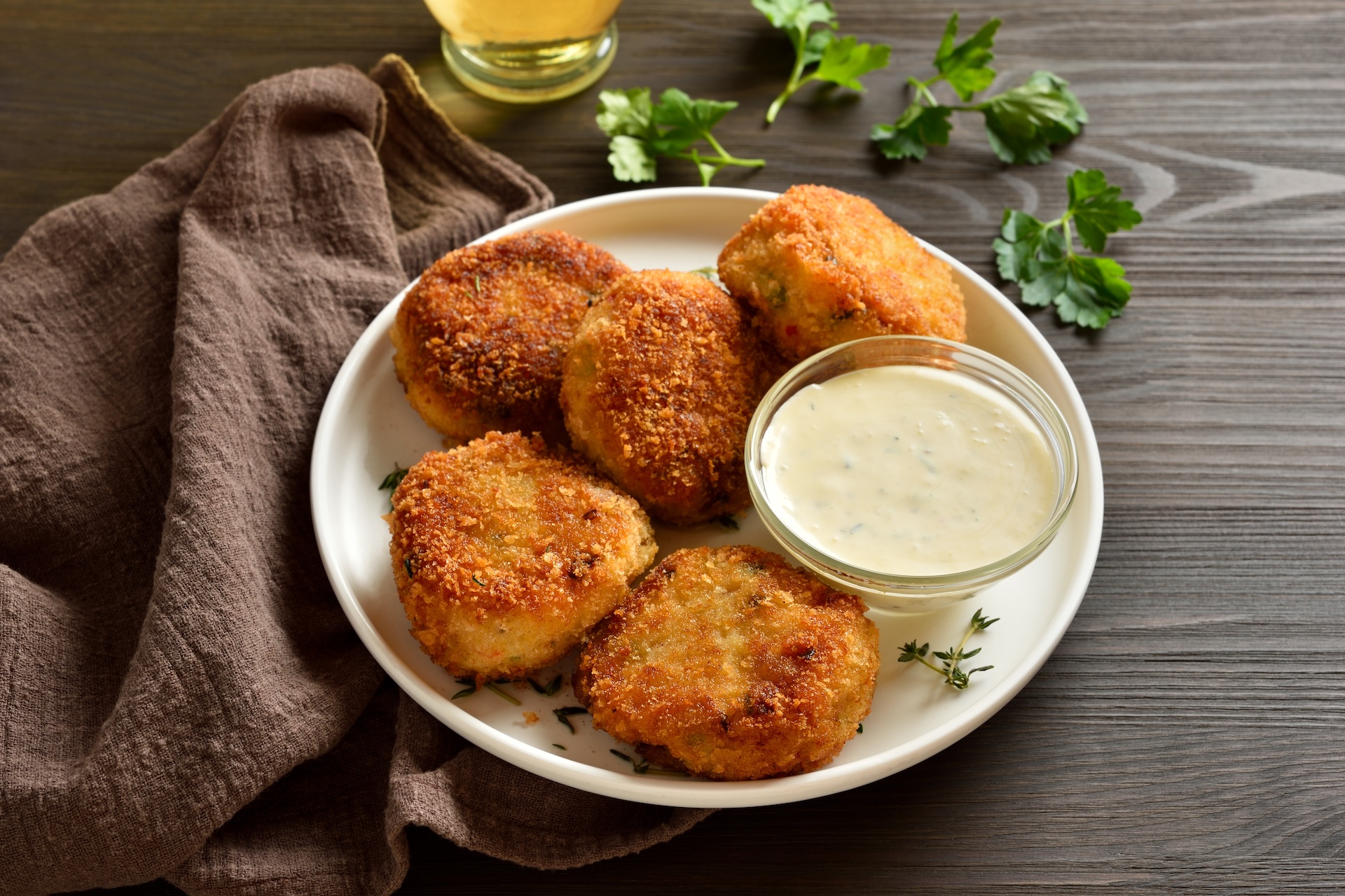 - Готовьте 12–15 минут при 180 °C. Панировка должна стать золотистой, а фарш полностью прожариться.