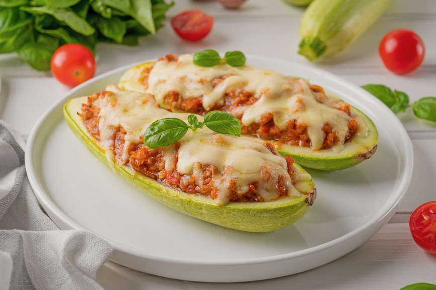 Это симпатичное и сбалансированное второе блюдо можно приготовить как для праздничного стола, так и на обычный ужин. Если делаете лодочки из кабачков на несколько дней, разогревайте в духовке, а не на плите или в микроволновке. Так получится вкуснее.