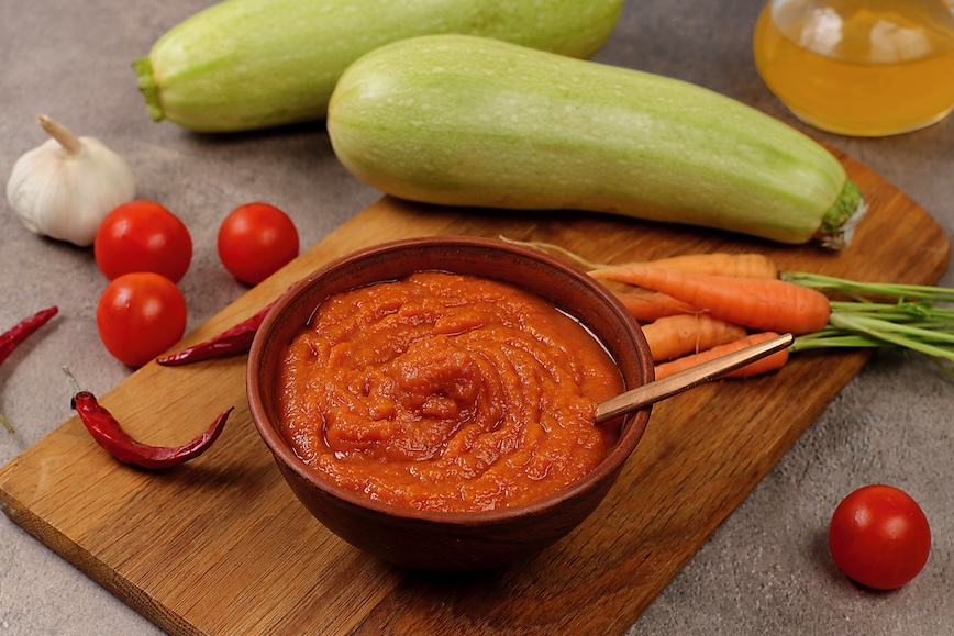 - Удалить кожуру и семечки, если необходимо. Молодые овощи можно не чистить.