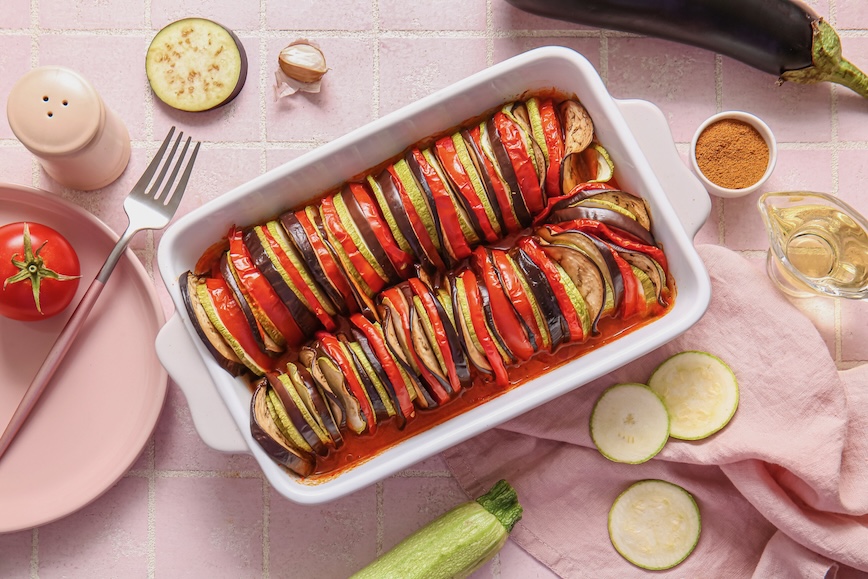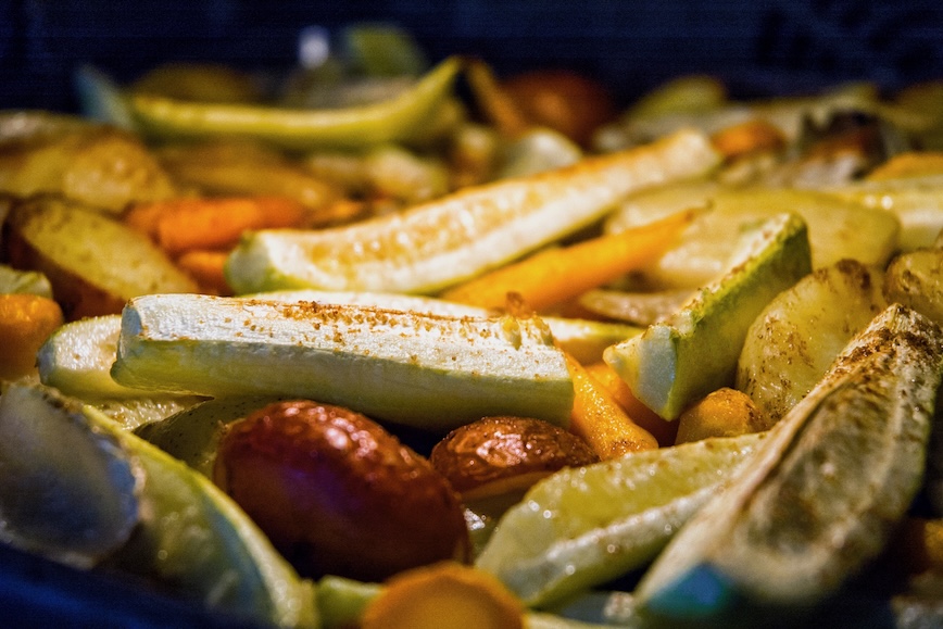 Кабачки с картошкой и другими сезонными овощами в духовке