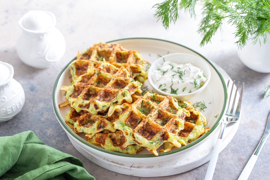 Это отличный вариант для завтрака или полезного перекуса. Кабачковые вафли можно приготовить заранее и подавать с яйцом пашот, свежими овощами или сметаной.