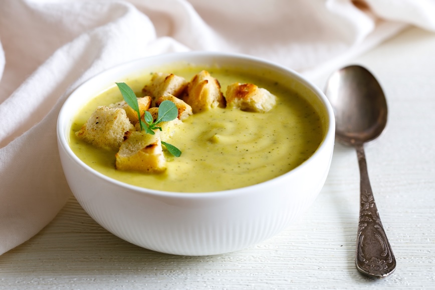 Кремовый суп из кабачков понравится даже тем, кто не очень любит этот овощ. Ведь вкус во многом зависит от специй. Добавьте побольше перца и чеснока — и получите довольно пряный, пикантный вариант. Или влейте дополнительную порцию сливок для нежности.