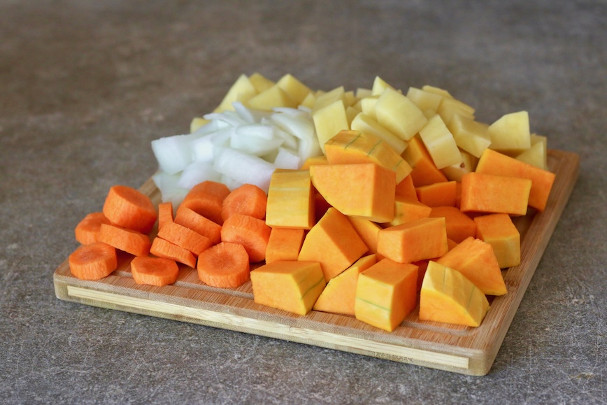Главное во время приготовления — не переборщить с количеством воды. Иначе суп будет слишком жидкий. Я люблю не варить, а скорее тушить овощи, а потом доводить суп до нужной консистенции сливками.