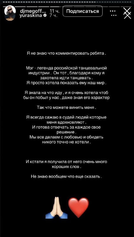 «Танцы, как и любой другой спорт, довольно жестокая ниша где каждую женщину всегда оценивали и будут оценивать исключительно визуально. И многие девушки/женщины подвергаются хейту за малейшее несоответствие с ЧУЖИМИ ожиданиями, а потом долго лечится или ебашит в поте лица».