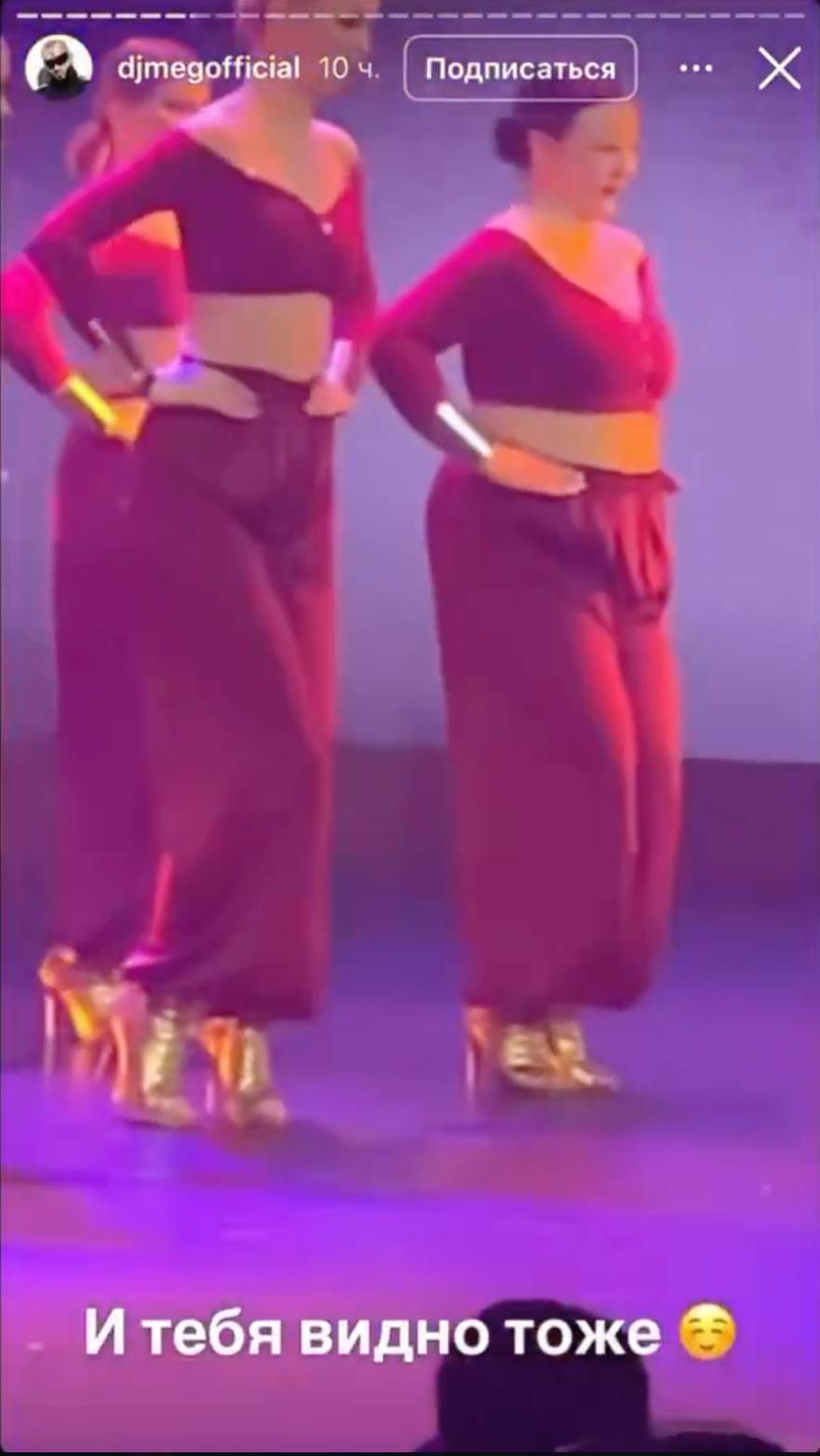 В своих соцсетях диджей M.E.G. выложил фрагменты выступлений разных танцевальных команд, в которых выделил двух девушек. Позднее музыкант заметил, что у обеих танцовщиц есть лишний вес и выглядят они «неэстетично».