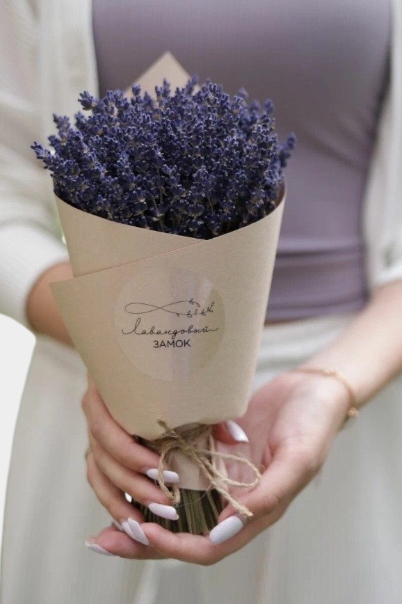 Такой букетик привнесёт в дом атмосферу Прованса. Он сделан из натуральной сушёной лаванды, аккуратно оформлен в крафтовую упаковку и перевязан бечёвкой. Лаванда приятно пахнет и сохраняет вид до 3–5 лет без ухода. Высота букета — 24 см.