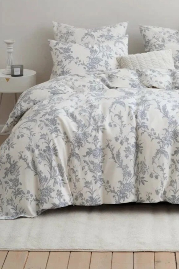 Комплект белого цвета, украшенный принтом в виде цветущих веточек, — от него веет атмосферой старинного готического замка. Постельное сделано из мягкого хлопка: ткань гипоаллергенная, прочная и сохраняет цвет даже после множества стирок. Материал не скатывается и долго сохраняет аккуратный вид. В комплекте идёт простыня, пододеяльник и две наволочки.