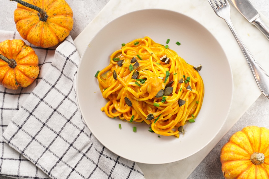 Быстрый и оригинальный соус для пасты из тыквы готовится в духовке почти без вашего участия. Удачный быстрый ужин на каждый день.