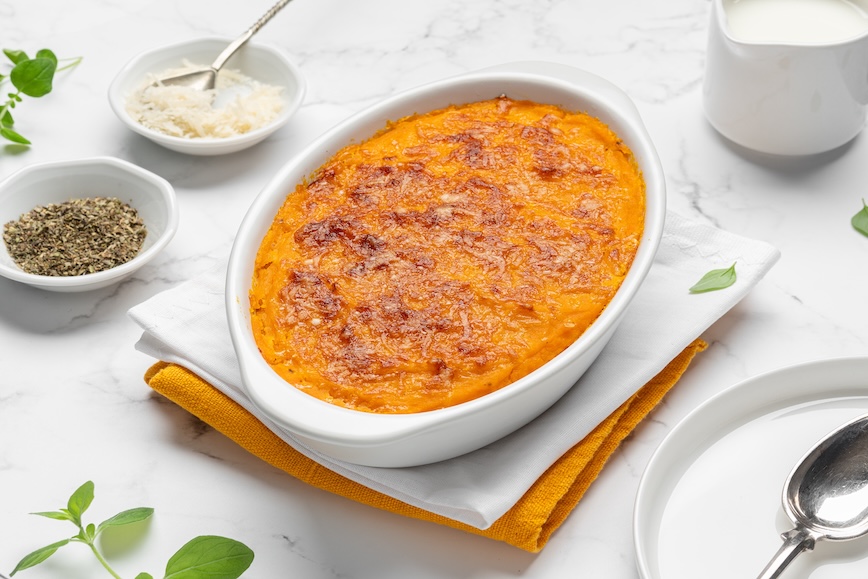 Такое вы точно не пробовали! Нежная сладкая запеканка из тыквы с шапкой из расплавленных зефирок. Это блюдо наверняка замотивирует попробовать осенний овощ даже детей-малоежек.