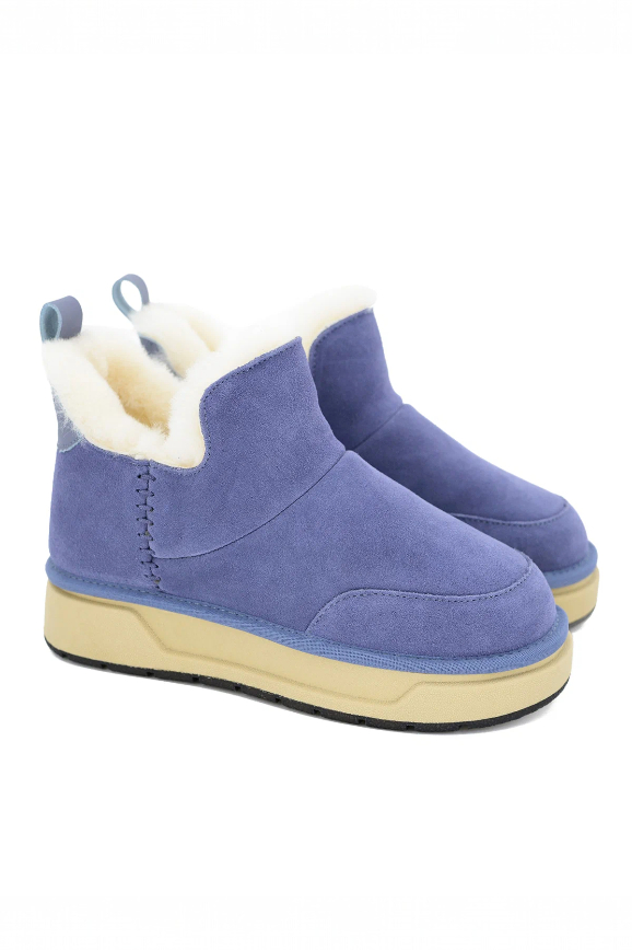 Если вы жить не можете без цветных акцентов — это ваш вариант. Именно такие угги надела бы современная Снегурочка: приятный глазу синий цвет, белая меховая обивка и износостойкий материал спилок, который прослужит ни один сезон. Можно идти дарить людям (но в первую очередь себе!) праздник.