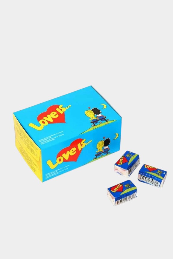 Любовь — это купить набор жвачек из детства и каждый день получать по предсказанию о том, что такое настоящая романтика в отношениях. В наборе 20 штук, а вкус можно выбрать из трёх вариантов: апельсин-ананас, банан-клубника или яблоко.