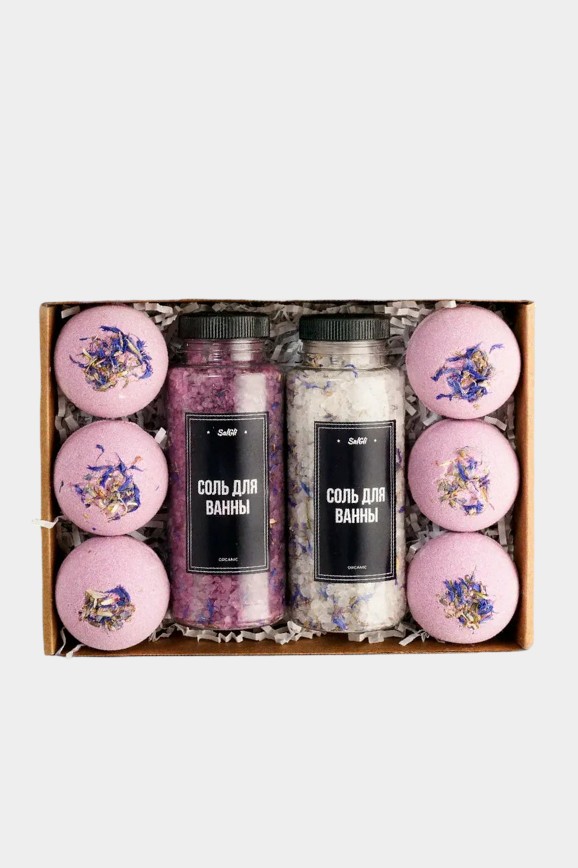 В наборе идут бомбочки для ванны и две баночки соли с разными составами. И всё это с успокаивающим ароматом лаванды. Идеально подходит для любителей и любительниц расслабиться после работы или устроить себе домашний спа.