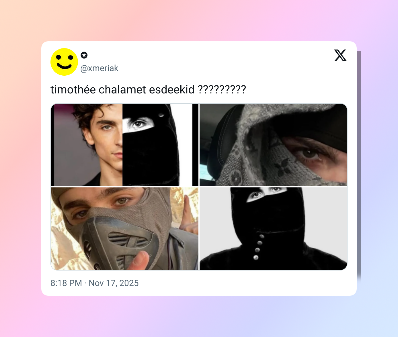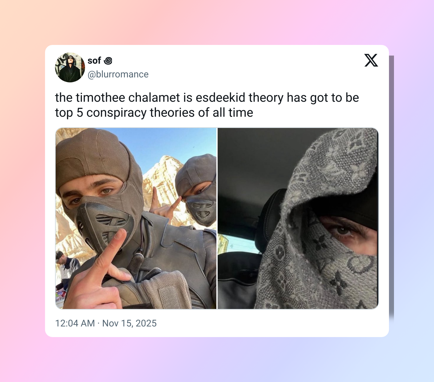 В сети обсуждают теорию заговора, связанную с Тимоти Шаламе. Поклонники Шаламе считают, что он скрывается под маской загадочного британского рэпера EsDeeKid.