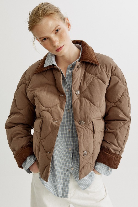 Эта куртка выглядит так, будто её забрали с дедушкиной дачи, но она ещё остаётся стильной и здорово смотрится в сочетании с джинсами и ботинками. Сделана вещь из мягкой стёганой ткани с вельветовым отложным воротничком и такими же манжетами. Удобный вариант для того, чтобы накинуть её и побежать заниматься повседневными делами.