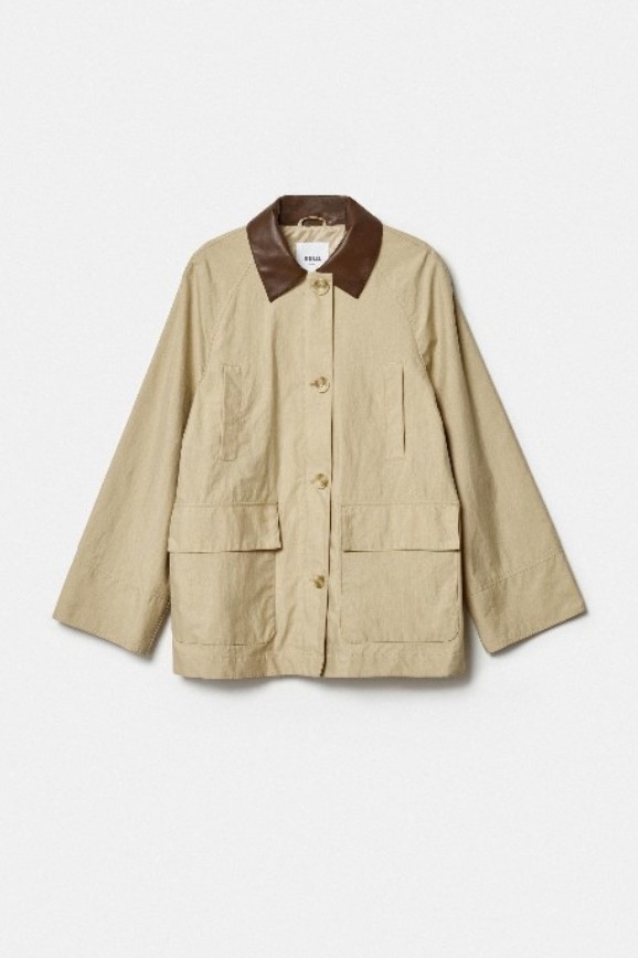 Её лучше брать на позднюю весну, когда температура поднимается до +15 ℃. Сделана куртка из смесового хлопка и искусственной кожи и пропитана специальным водоотталкивающим раствором — можно не бояться попасть под дождь и испортить вещи. Но самое главное здесь — дизайн, построенный на контрастах: сама куртка и отложной воротник различаются по цвету. А ещё ткань кажется как будто немного помятой, и это добавляет любому образу лёгкой небрежности.