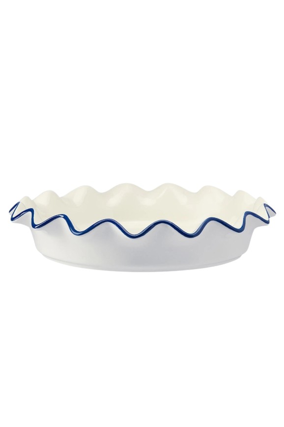 Она сделана из каменной керамики, которая устойчива к высоким температурам. Дизайн простой, но элегантный: белая форма с синей каёмкой. Идеально подходит, чтобы готовить любимые пироги и запеканки, которые в такой посуде будут получаться не хуже, чем у Бри Ван де Камп.