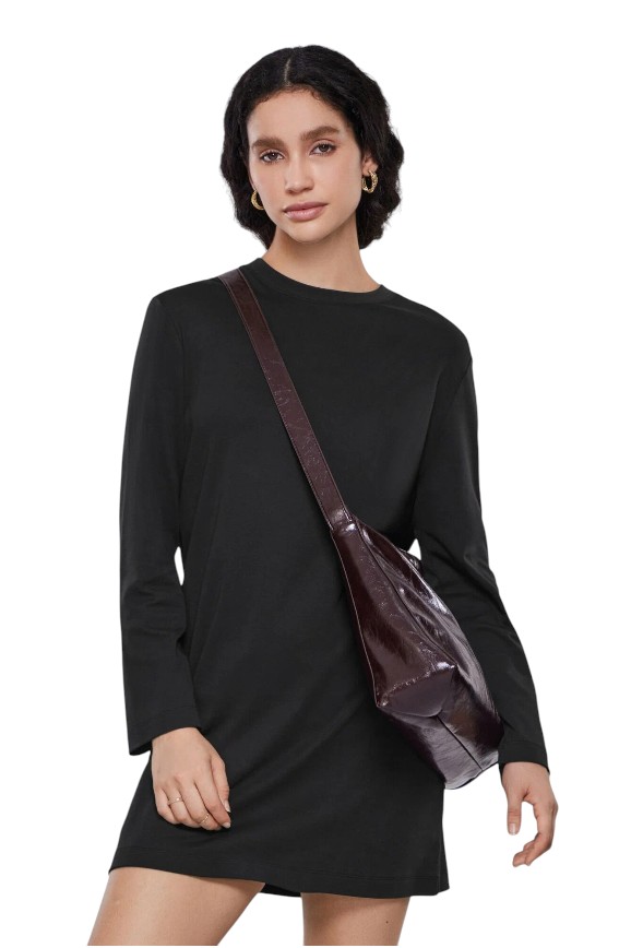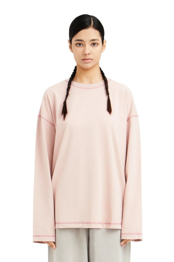 Он похож на раннее утро, когда солнце только-только вышло из-за горизонта и повсюду ещё царит атмосфера спокойствия. Лонгслив сделан из мягкой ткани и окутывает так же нежно, как тот самый первый луч солнца, заглянувший в окно. Прямой крой не сковывает движений, удлинённые рукава добавляют расслабленности, а декоративные швы играют роль тихого акцента. В нём удобно быть собой — и дома с книгой, и в офисе под строгий пиджак, и на прогулке с кофе навынос.