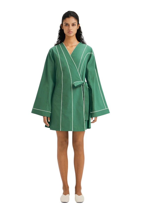 Когда ты обычная девчонка, но в душе мечтаешь хотя бы на денёк перевоплотиться в Момо из «Монолога фармацевта» и подчинить себе весь Императорский двор. Это платье-кимоно даёт почти ту же силу: лёгкий, но формоустойчивый хлопок, контрастные бейки, рукава, которые драматично взлетают при каждом движении, и широкий пояс, подчёркивающий талию. Длина — мини. Но не пугайтесь, его можно носить с лосинами, велосипедками и шортами.