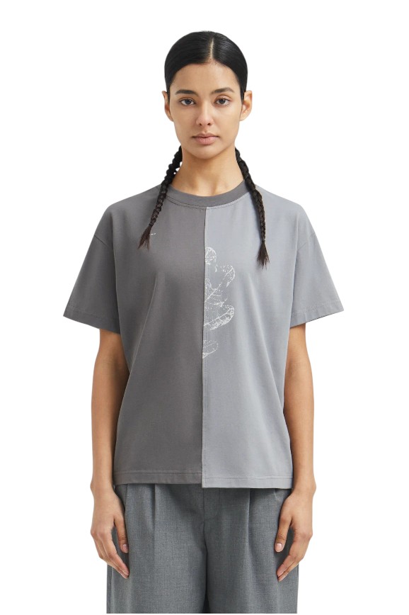 Мы не сомневаемся, что вы сами по себе уже произведение искусства. А стильная футболка с лёгкой ноткой авангарда лишь в очередной раз это подчеркнёт. Она сшита из тканей двух разных тонов, а асимметричный низ создаёт динамику в образе. Особенно эффектно она смотрится в сочетании с базовыми брюками в тон — и вот вы уже из ударницы труда превращаетесь в музу Казимира Малевича.