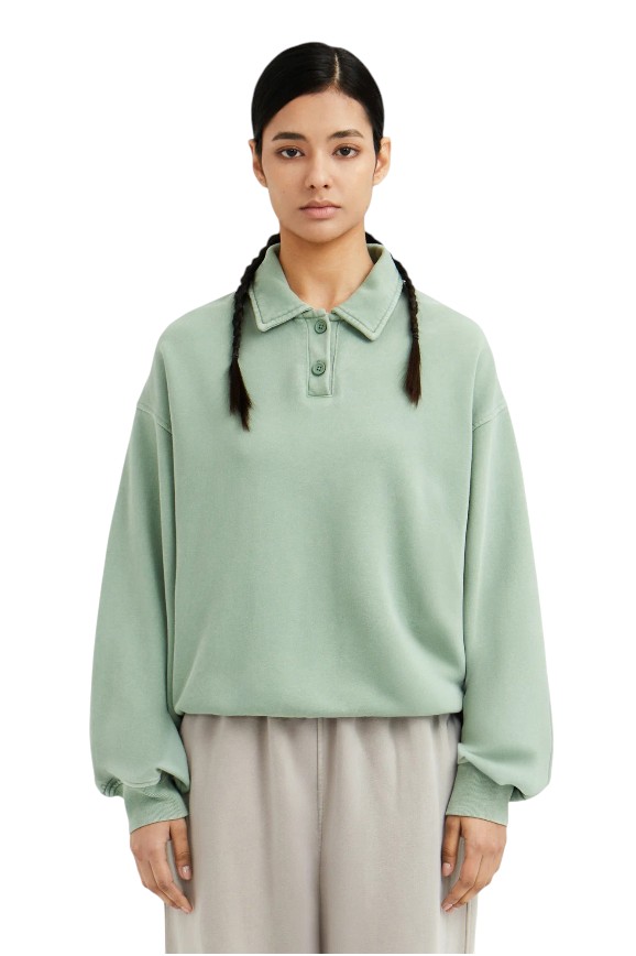 Он словно тёплый плед с рукавами — объёмный, уютный и невероятно мягкий. Всё дело в составе: 100%-й хлопок. А ещё в петельчатой изнанке без начёса: ткань не скатывается, дышит и приятно прилегает к телу. На первый взгляд дизайн кажется простым, но именно детали делают его особенным: воротничок, аккуратные пуговицы, лёгкая потёртость. И вот уже базовая вещь играет по-новому, добавляя изюминку даже в самый обычный образ с джинсами. Эффект почти тот же, что и у макияжа без макияжа.