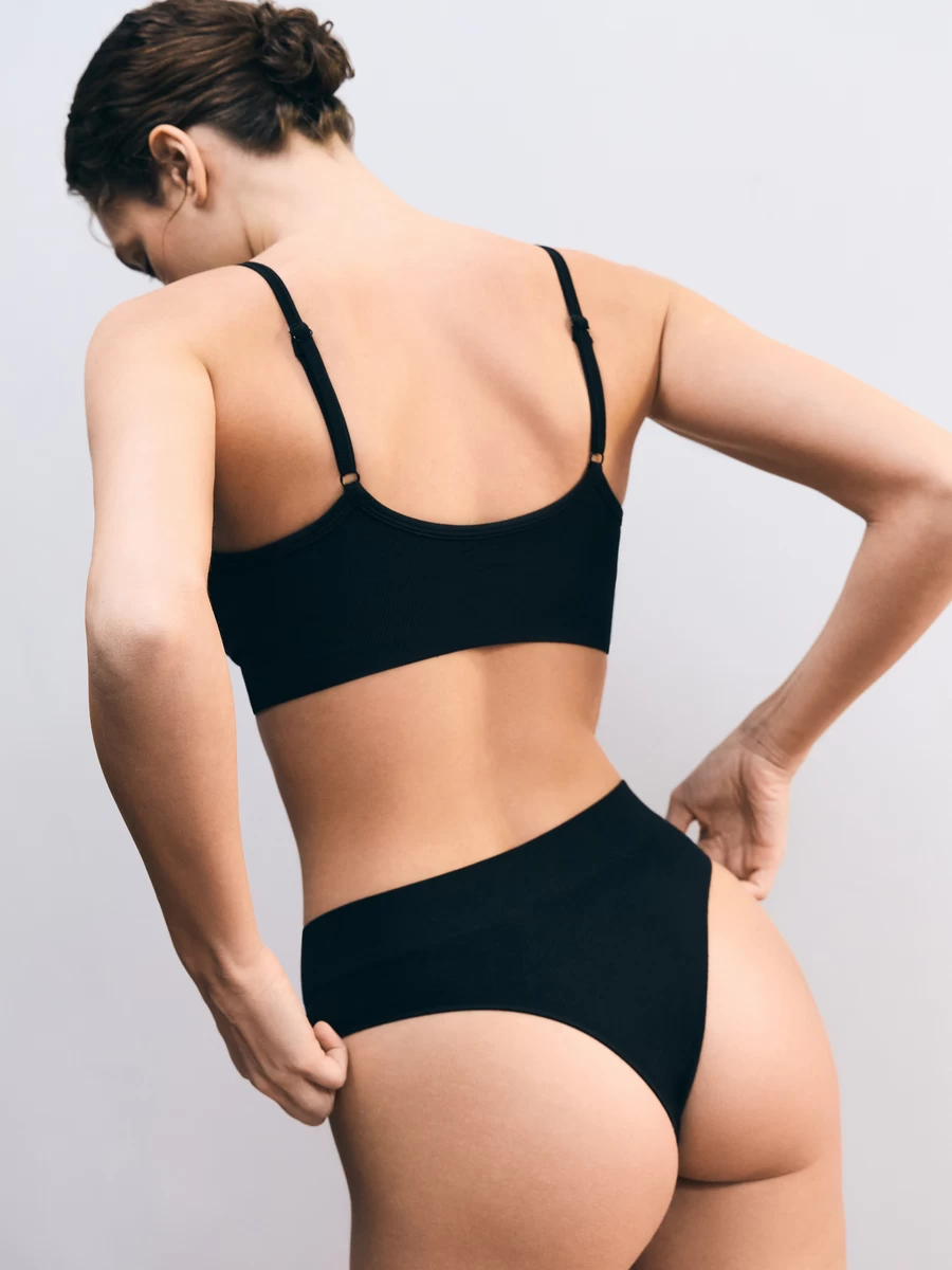 В линейке можно найти как классические модели, так и более спортивные. Например, в коллекцию вошли бесшовные комплекты, которые можно носить под платья, брюки и юбки из тонких материалов. Размерная сетка доходит до 48-го размера, или L.