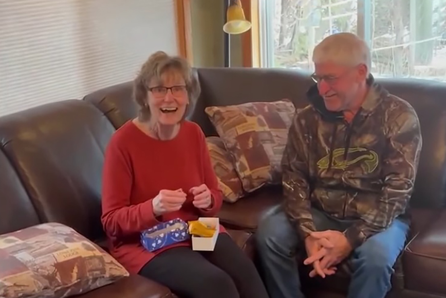 Момент вручения подарка. Кадр из YouTube-видео WBAY TV‑2 | Green Bay, WI