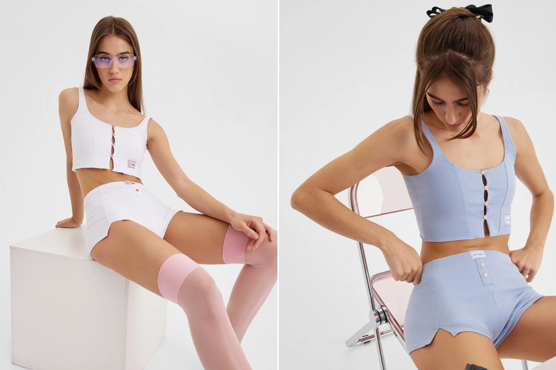 Модель основана на ретрокрое и украшена декоративными пуговицами, контрастной отстрочкой и небольшими разрезами спереди. Легко представить, что такой фасон понравился бы Мерилин Монро. На выбор есть два цвета — белый и нежно-голубой.
