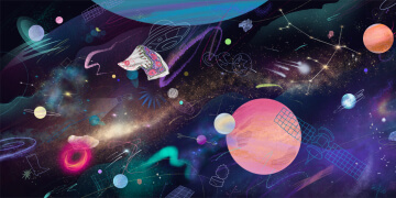Игра на внимательность, где нужно найти все небесные тела, чтобы узнать, какие из них связаны с исследованием космоса женщинами.